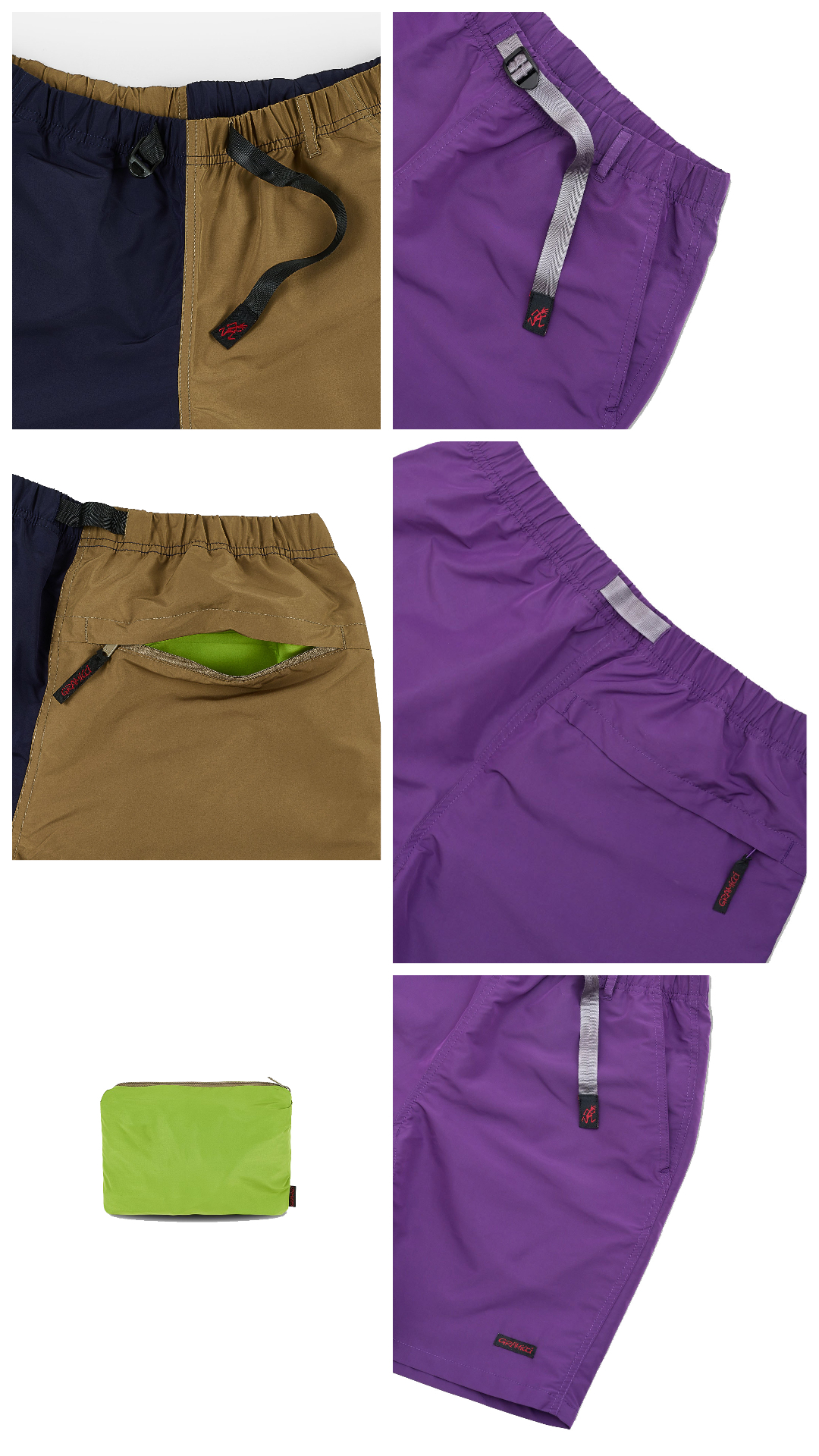 為可收納成一個小包包方便攜帶的夏季短褲。材質快乾防潑水,且是可以穿去泳池的 chlorine-safe 面料。