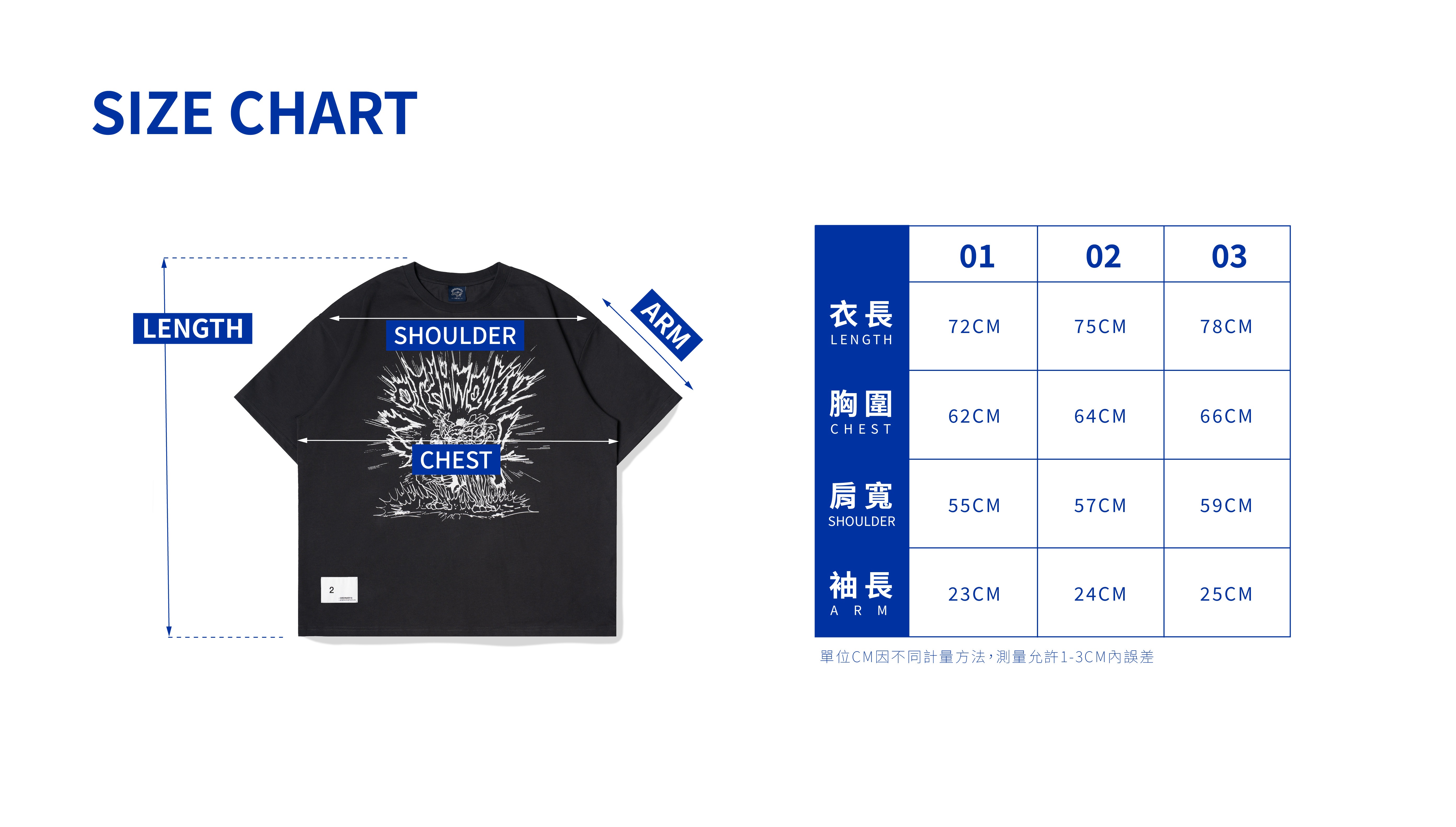 02:衣長75cm / 胸寬64cm/肩寬57cm/袖長24cm