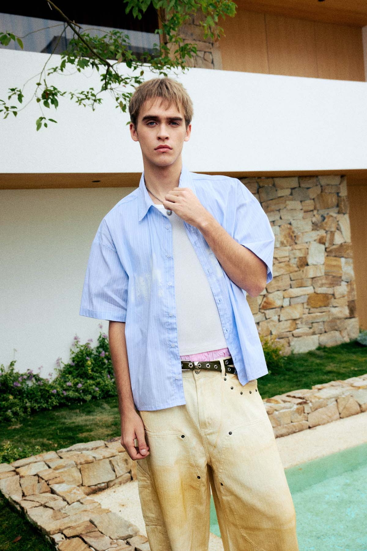 ・細直條紋面料,視覺上拉長比例,同時保持清爽層次感